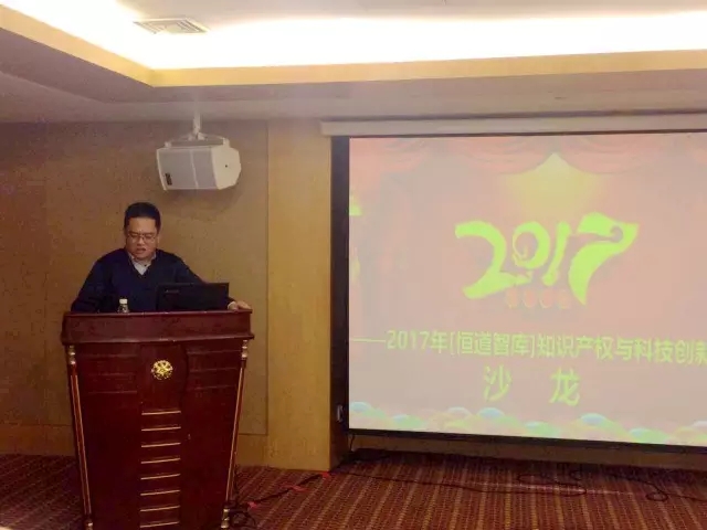 会上,成都恒道知识产权与科技创新研究院周院长致辞,介绍了研究院2016年年度工作的开展情况。并指出,在刚刚过去的2016年,是四川知识产权工作硕果累累、突破连连的一年。在省市局领导的高度重视和战略部署下,全省知识产权事业取得了显著进展,各方面工作成绩突出,希望在2017年全体同行能够齐心协力,为四川省建设西部知识产权强省而共同努力。