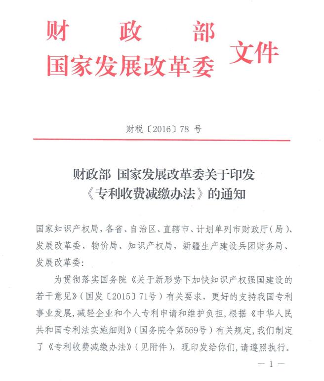 专利收费减缴办法